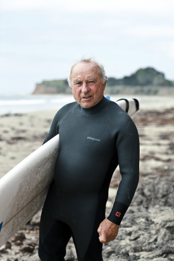 En Mexico con un surfer de mas de 50 años (un traje de baño reciclado con un pedazo de sombrilla); en Utah con una chica que hace trail de varios miles de Km (un gorro); en California con un educador de mas de 60 años (con su campera); en New Hampshire con una familia (un enterito de niño); en California con un señor y sus verduras orgánicas; en Virginia con un señor que es fotografo de National Geographic; En Vermont con un señor y su hija esquiadores (Pantalon de polar)…